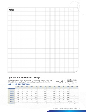 (21°C). To determine flow rates for specific coupling configurations use the formula at the right. flow rates (see chart)