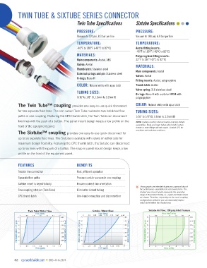 paths in one coupling. Featuring the CPC thumb latch, the Twin Tube can disconnect 1/16" to 1/8" ID, 1.6mm to 3.2mm ID
