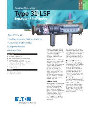 • Horizontal Flow LSF Separator/Filter removes directed to the second stage
