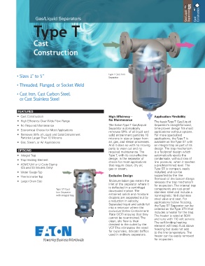 • No Required Maintenance The Eaton Type T Gas/Liquid Separator’s straightforward,