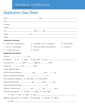 Maximum Entrained Liquid: ______________ lb/hr ____________ gpm ____________ kg/hr