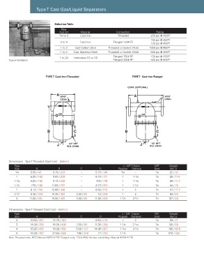 Note: Threaded ends, NPT, Material ASTM A-278. Flanged ends, 125 lb ANSI flat face and drilling, Material ASTM A-278