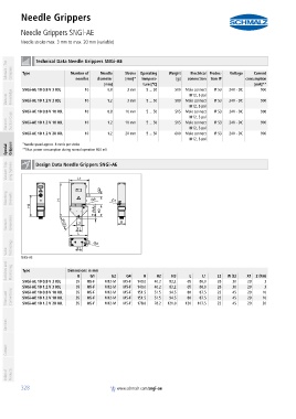 Schmalz - The Company container Type Technical Data Needle Grippers SNGi-AE Stroke Operating Weight Electrical Protec- Voltage Current
