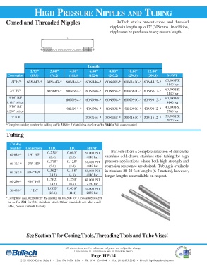HIGH PRESSURE NIPPLES AND TUBING