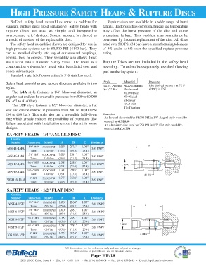 standard rupture discs (sold separately). Safety heads with ratings. Factors such as corrosion, fatigue and temperature