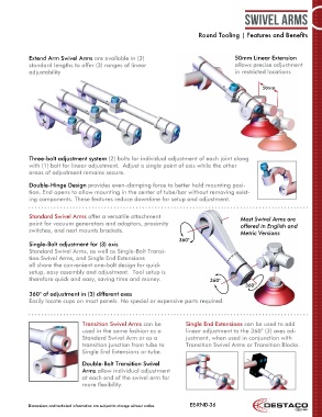 Extend Arm Swivel Arms are available in (3) 50mm Linear Extension