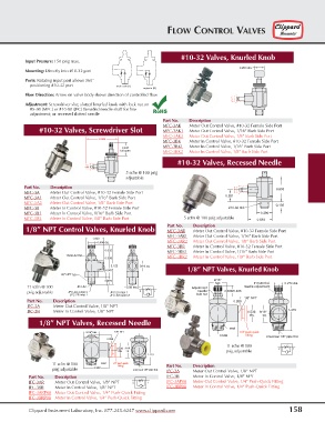 JFC-3BR Meter In Control Valve, 1/8” NPT JFC-3BP08 Meter In Control Valve, 1/4” Push-Quick Fitting
