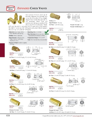 bill” seal. The MCV-1 series has #10-32 ports and a brass poppet. Pressure To Fully Open: 2.5