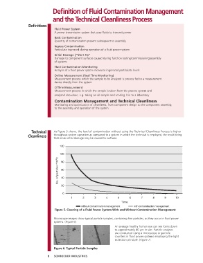 Microscope images show typical particle samples, containing fine particles, as they occur in fluid power
