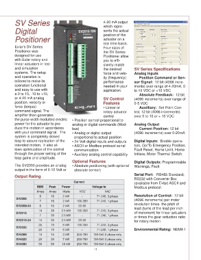 The SV2000 provides an analog • Absolute positioning (with optional Warnings, Fault