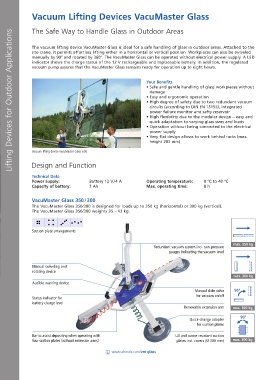 The vacuum lifting device VacuMaster Glass is ideal for a safe handling of glass in outdoor areas. Attached to the
