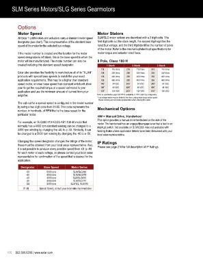All Exlar T-LAM motors and actuators carry a standard motor speed SLM/SLG motor options are described with a 3 digit code. The
