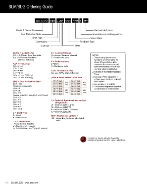 SLG = SLG Series Servo Gear Motor G = Anodized Aluminum (standard) NOTES: