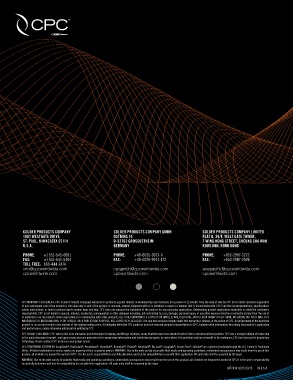 product, all of which are beyond the control of CPC. It is the user’s responsibility to carefully determine and test for compatibility for use with their application. All such risks shall be assumed by the buyer.