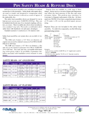 BuTech safety head assemblies serve as holders for standard Rupture discs are available in a wide range of burst
