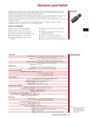 ■ Integrated temperatures compensation ■ Selectable analog output (optional) Fluid Level