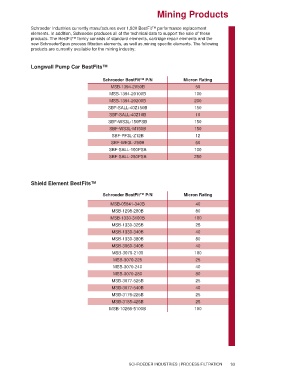 new SchroederSpun process filtration elements, as well as,mining specific elements. The following