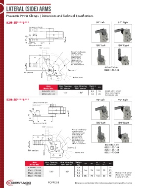 Pneumatic Power Clamps | Dimensions and Technical Specifications
