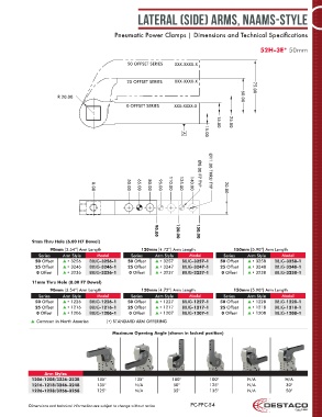 Pneumatic Power Clamps | Dimensions and Technical Specifications
