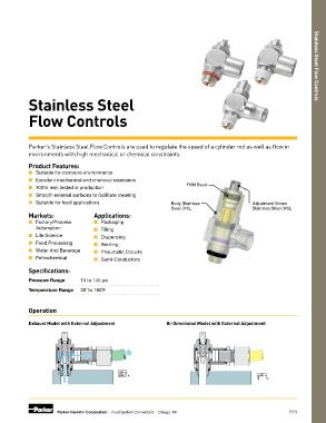 Parker’s Stainless Steel Flow Controls are used to regulate the speed of a cylinder rod as well as flow in