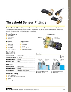 Parker’s Threshold Senor Fitting detects the pressure drop when a cylinder reaches the end of its stroke.