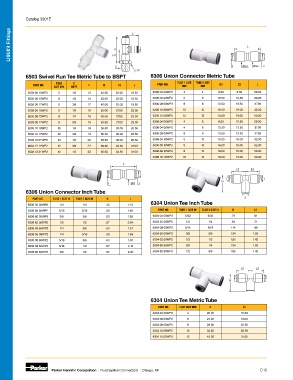 6503 Swivel Run Tee Metric Tube to BSPT 6306 Union Connector Metric Tube
