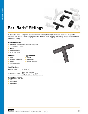 Parker’s Par-Barb Fittings are injection molded from high strength chemically inert, thermoplastic