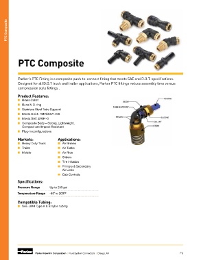 Parker’s PTC Fitting is a composite push-to-connect fitting that meets SAE and D.O.T. specifications.