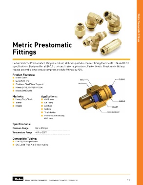 specifications. Designed for all D.O.T truck and trailer applications, Parker Metric Prestomatic fittings