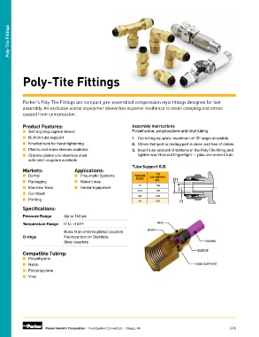 Parker’s Poly-Tite Fittings are compact, pre-assembled compression style fittings designed for fast