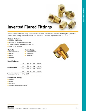 Parker’s Inverted Flare Fittings offers a metal-to-metal seal that is internal to the fitting for tighter tube