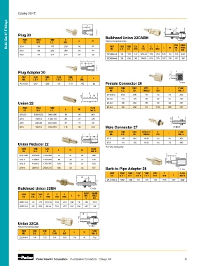 Dubl-Barb ® Fittings Plug 20 TUBE TUBE DIA. L M L M C Bulkhead Union 22CABH D M P L C HEX