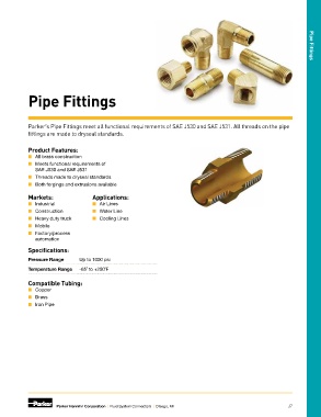 Parker’s Pipe Fittings meet all functional requirements of SAE J530 and SAE J531. All threads on the pipe