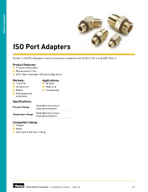 Parker’s ISO Port Adapters meet dimensional requirements of ISO 6149-3 and SAE 2244-3.