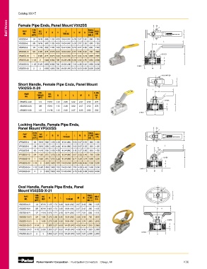 Ball Valves Female Pipe Ends, Panel Mount V502SS PANEL HOLE F I ON