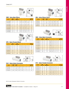 VME - Valve Male Elbow VEU - Valve Elbow Union