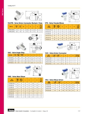 VUCPB - Valve Union Connector Barbed x Tube VFE - Valve Female Elbow