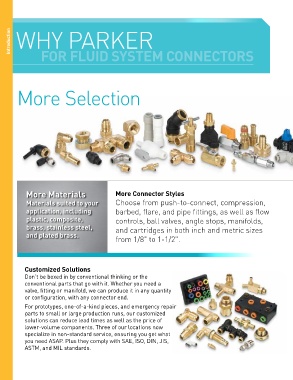 application, including barbed, flare, and pipe fittings, as well as flow