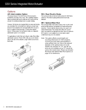 anti-rotation systems. Shorter GSX units use an anti-rotation Note: This option affects overall length and