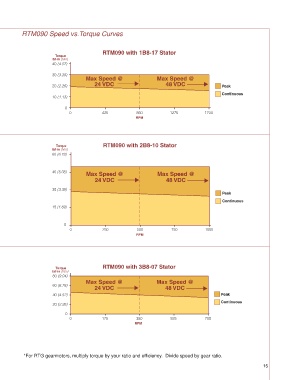 *For RTG gearmotors, multiply torque by your ratio and effi ciency. Divide speed by gear ratio.