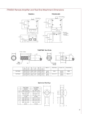 TRA500 Remote Amplifi er and Rod End Attachment Dimensions TRA500-I TRA500-N/G TLM/TSM Rod Ends Spherical Rod Eye 31
