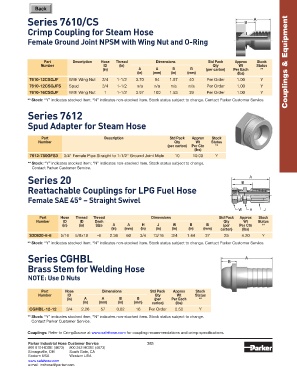 Part Description Hose Thread Dimensions Std Pack Approx Stock Couplings & Equipment