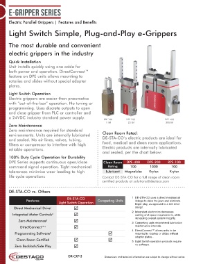 and sealed. No air lines, valves, tubing, DE-STA-CO’s electric products are ideal for