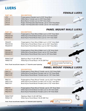 Note: Panel mount luers require a ¼" diameter panel opening also available.