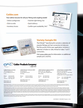 lar application. Determining product application suitability is solely the customer’s responsibility. Colder Products Company is not liable for special, indirect, incidental, consequential or other damages includ-