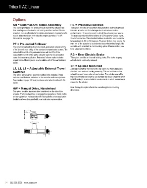 screw for the same application. Preloaded follower option includes This option provides an internal holding brake. The brake is spring