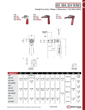 Straight Line Action Clamps | Dimensions | -SS/-MM/-MMSS