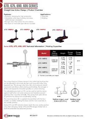 Series 670, 675, 690, 695 Technical Information | Holding Capacities