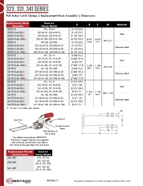 Pull Action Latch Clamps | Replacement Hook Assembly | Dimensions
