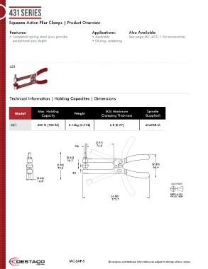 • Tempered spring steel jaws provide • Assembly See page MC-ACC-1 for accessories